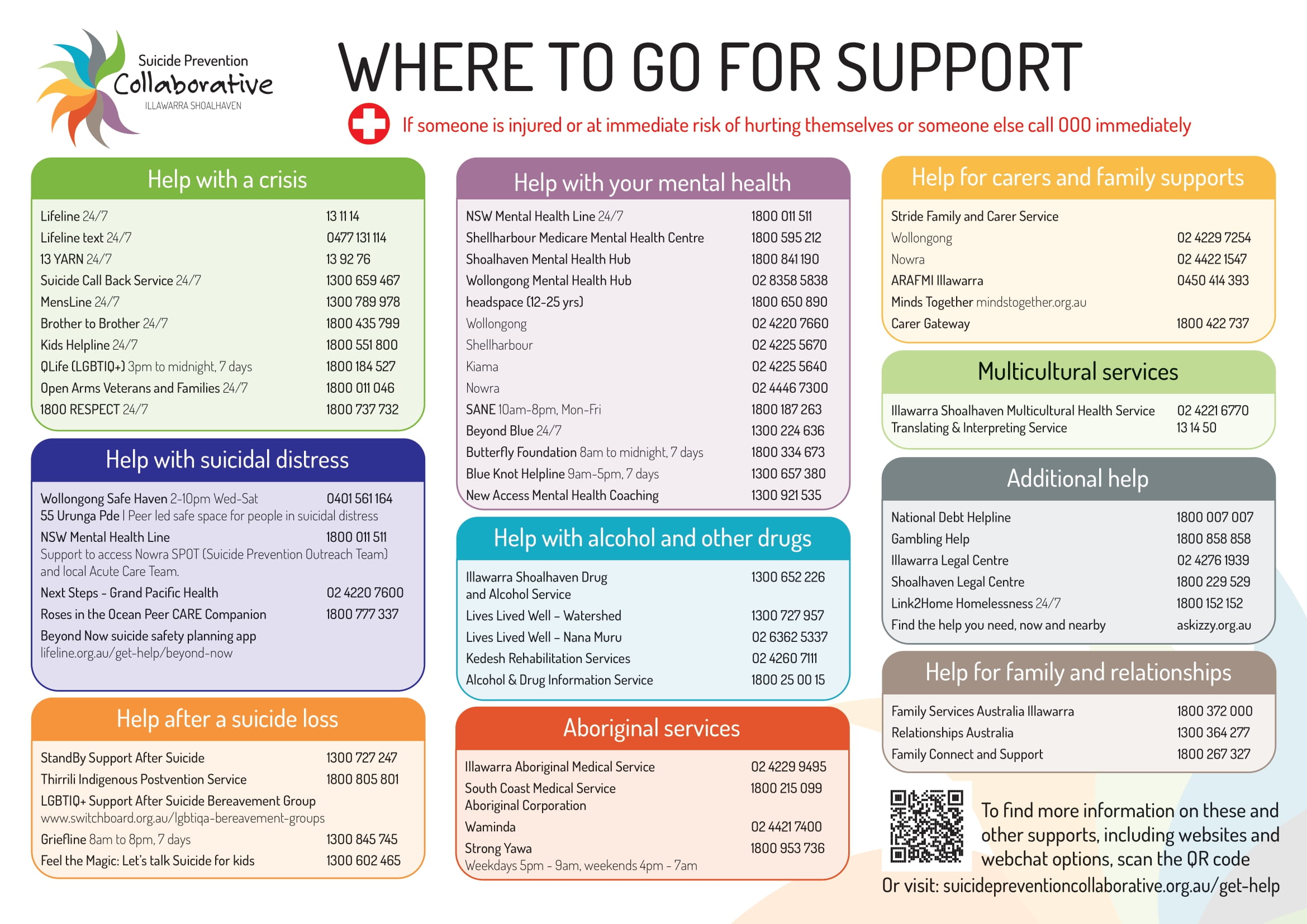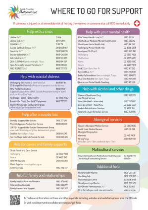 The Collaborative has developed a 'Where to go for support' resource that highlights key mental health and other supports available in the Illawarra Shoalhaven region.